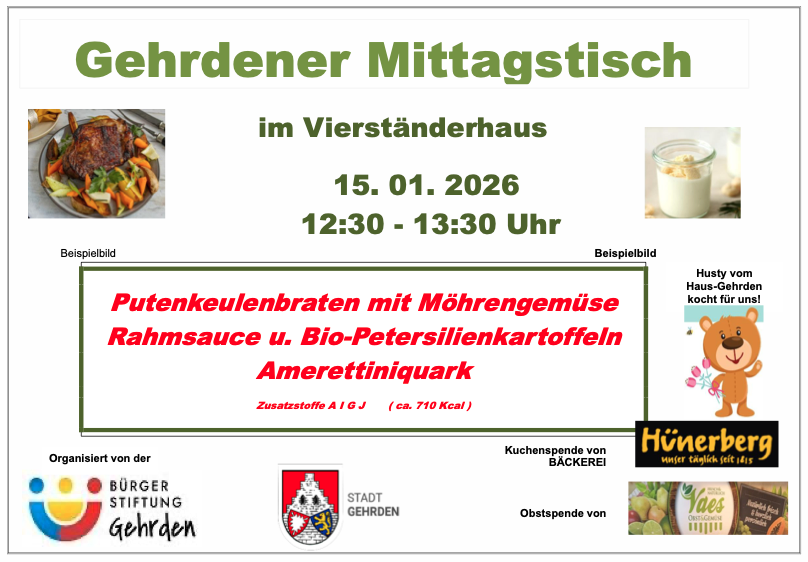 “Wir hatten an 47 Mittagstischen 1.391 Gäste zu Tisch. Und obwohl jeder Gast freiwillig seinen Obolus zum Essen dazu gibt, haben sich die Kosten getragen. Das ist ein Zeichen, dass der Mittagstisch hauptsächlich zum wöchentlichen Treffen genutzt wird. Wir nahmen als Bürgerstiftung Gehrden am Spendenaufruf des NDR 1 „Hand in Hand für Norddeutschland“ teil. Motto im letzten Jahr war „Gegen die Einsamkeit“. Der Gehrdener Mittagstisch hat die Thematik voll getroffen und wurde finanziell gut bedacht.”